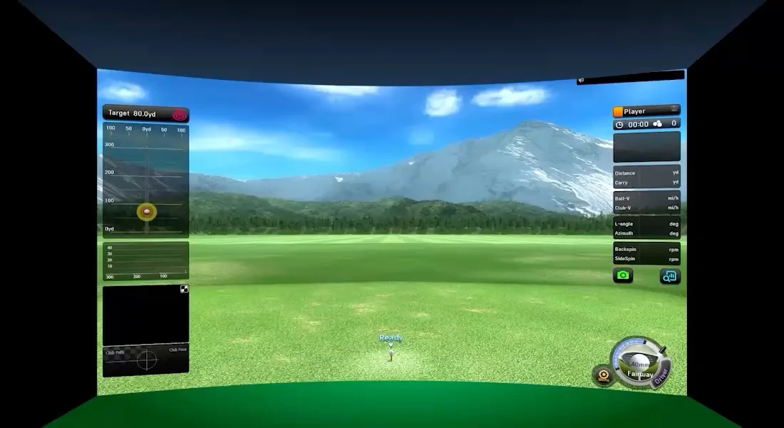 Great simulator!! It has a super big screen! that’s clear and super responsive. You have lots of room to swing, it’s private and easy to setup. There is lots of room for bags, sitting and standing.